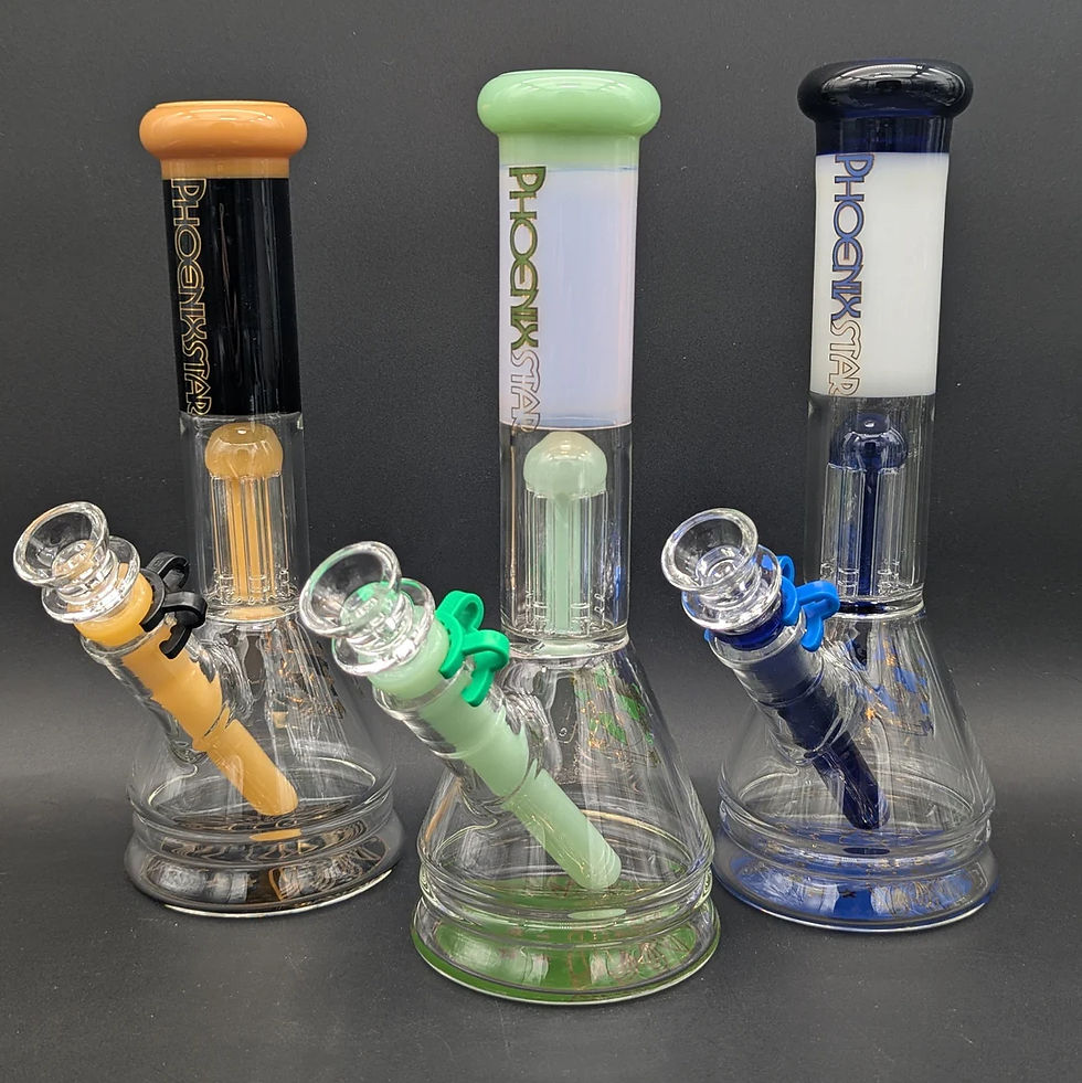 Phoenix Star 10" 6 Arm Tree Perc Maria Accented Beaker Bong